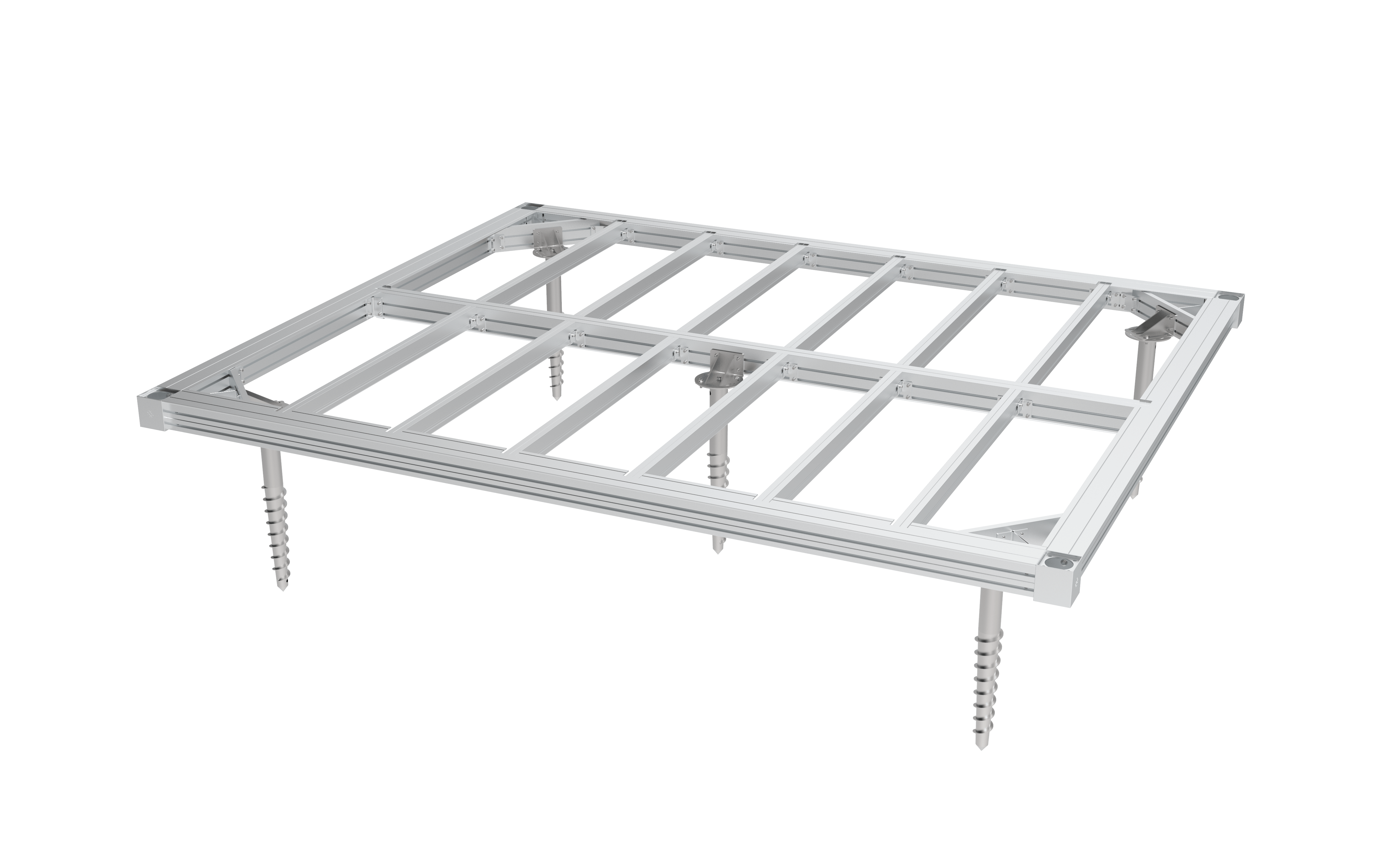 | Materials | Aluminum frame, stainless steel hardware, galvanized steel ground screws, Wood plastic composite decking | ||